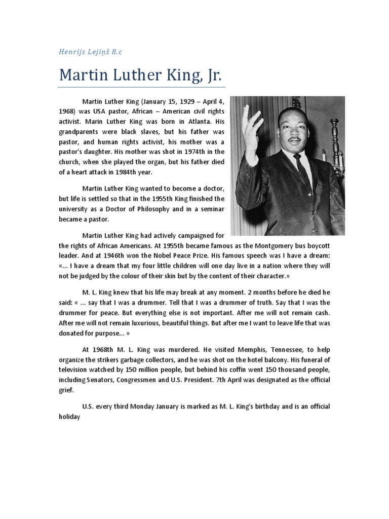 His father has served from then. The holiday is similar to holidays set under the uniform monday holiday act. Martin luther king jr january 15 1929 april 4 1968 was born michael luther king jr but later had his name changed to martin.